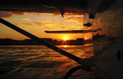 Keywords: sunset sun setting tarmac glow orange aircraft