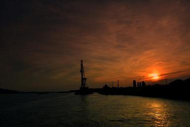 Keywords: sunset sun sky cloud water red lake in the evening shadows