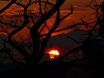 Keywords: sunset sun sky light burn glow silhouette back light tree trees clouds orange red