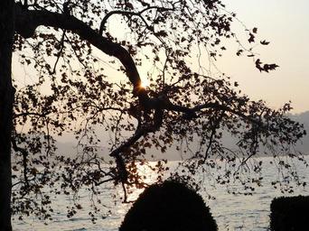 Keywords: sunset sun tree lugano lake lake reflection sun sunset