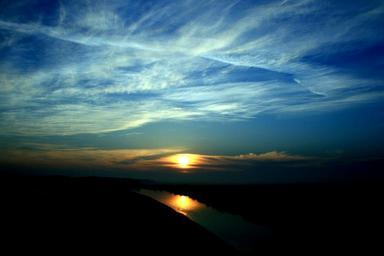 Keywords: sunset sun water cloud reflection in the evening blue orange