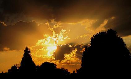 Keywords: sunset sun white light gold luminous glowing yellow glorious bright trees silhouettes