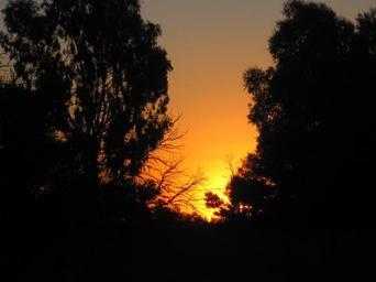Keywords: sunset sundown bright glow gold and orange yellow soft evening big trees silhouette darkness sky