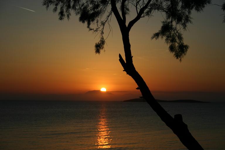 Keywords: sunset tree sea evening horizon