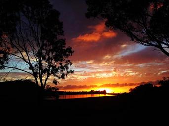Keywords: sunset tree silhouette nature dusk orange evening horizon scene ocean scenic clouds sky landscape water sea