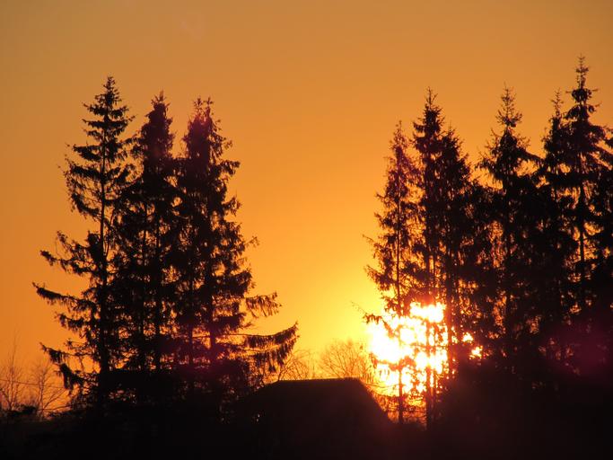 Keywords: sunset trees fir silhouette nature sun evening orange view forest sunlight season