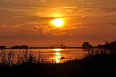 Keywords: sunset water cloud summer lake solar evening mirroring gotland