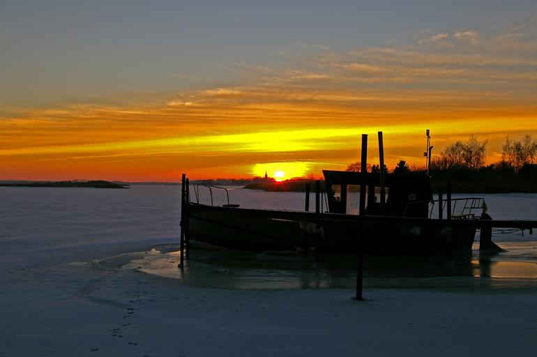Keywords: sunset winter evening winter ice frozen frost winter magic cold romantic snow wintry snowy landscape golden sun nature beautiful evening white port fishing boat cutter fischer water boot frosty sky winter mood icy background iced idyllic winter dream snowed in snow magic bodden riems island jetty