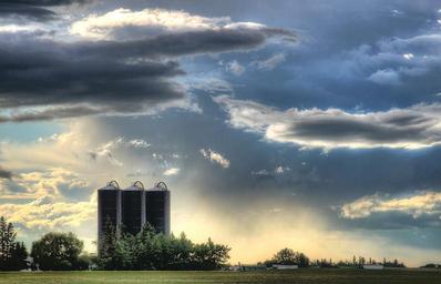 Keywords: Sunshower-Leduc-County-Alberta-Canada-01A.jpg en Grain towers and sun shower in Leduc County Alberta Canada 2015-06-20 19 21 25 own WinterE229 other versions cc-zero Leduc County Alberta 2015 in Canada