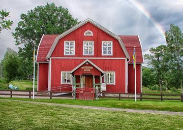 Keywords: suntak sweden landscape building welcome center house architecture sky clouds rainbow summer spring grass field nature outside country countryside hdr