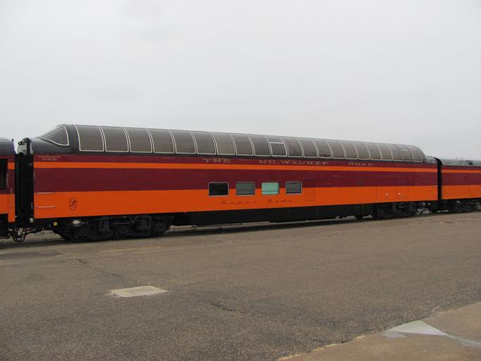 | Keywords: Superdome Hiawatha.jpg en Skydome Hiawatha car of Twin Cities Hiawatha of Chicago Milwaukee and St Paul Railroad in the Chicago Milwaukee St Paul and Pacific Railroad color scheme de Kanzelwagen des Twin Cities Hiawatha der Chicago Milwaukee and St Paul Railroad n den Farben der Chicago Milwaukee St Paul and Pacific Railroad own Reinhard Dietrich Okt 2012 Cc-zero Super Dome cars |