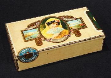 Keywords: Superiores cigar box, pic5.JPG Very old packaging of a product that is not produced and not sold any more own 2014-04-11 12 25 04 Alf van Beem CC-Zero Trademarked Cigar boxes Superiores cigars