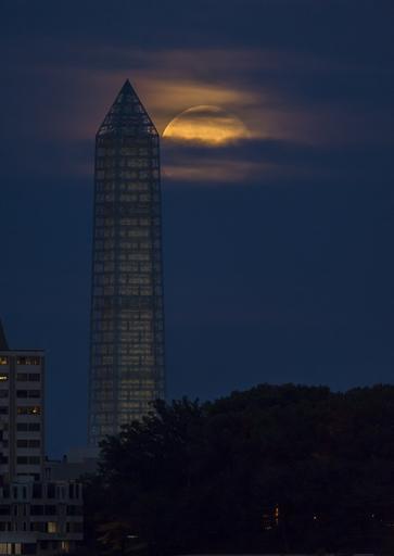 Keywords: supermoon full perigee night washington monument glowing bright light clouds district of columbia dc usa america