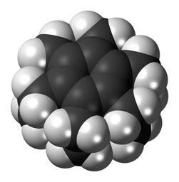 | Keywords: Superphane-3D-spacefill.png Space-filling model of the superphane molecule a six-fold bridged cyclophane Colour code 505050 Carbon C black<br> F0F0F0 Hydrogen H white<br> 2011-01-26 own DS Visualizer Jynto talk Ball-and-stick version Skeletal stick version cc-zero Cyclophanes Images by Jynto |