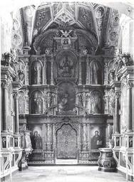 | Keywords: Suprasl ikonostas.jpg Artwork en Nonexistent iconostasis in the Annunciation Church in Supraśl pl Nieistniejący ikonostas w świątyni Zwiastowania w Supraślu Wood gilt oil on canvas en The iconostasis was created in Gdańsk <ref name suprasl > pl icon date 2011-08-19 Niesłychanie cenne dzieło Andrzeja Modzelewskiego snycerza i pozłotnika w Gdańsku ukończone 8 czerwca 1664 r i tu na barkach woda dostarczone jak stwierdza klasztorna kronika czasie wojny z bazyliki rozmaite rzeźby ołtarze sowieci rabali i palili w bani Pałac Opatów sowieci odstępując w 1941 roku podpalali dwa razy aż zawaliły sie dachy i stropy W trzy lata później oddział ukraińskich minerów będących na niemieckim żołdzie wnosi do bazyliki miny przeznaczone do zablokowania Tatarskiego Goscinca Rano potężna detonacja rozwiązała problem komu się bazylika i ikonostas należy </ref> It was one of the most distinguished baroque works of this type across the whole of Podlachia The 16th century frescoes above the altar were created by anonimous Ruthenian painter The iconostasis was destroyed by the Soviet soliders in about 1941 while the Church was blown up by the German Army in 1944 <ref name suprasl /> Object history < 1643 commission Unite Archimandrite Nikodem Mokosiej Szybiński 1664 6 8 transfer Supraśl 1944 LangSwitch destroyed détruit zniszczony <br> Henryk Poddębski 1936 Cerkiew bazylianów Zwiastowania Najświętszej Marii Panny w Supraślu < 1664 Andrzej Modzelewski from Vilnius and Master Wincenty Other versions Photo Photograph Henryk Poddębski 1936 Cerkiew bazylianów Zwiastowania Najświętszej Marii Panny w Supraślu Henryk Poddębski 1936 PD-old References Reflist History of the Supraśl Orthodox Monastery Baroque altars destroyed in Poland during World War II 17th-century iconostases Iconostases in Poland Gdańsk in the 17th century |
