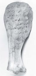 Keywords: Surat al-Fatiha inscribed upon the shoulder blade of a camel.jpg PD-old Qur'an Camel bones Scapula