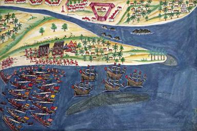 | Keywords: Suratbattle (straightened).jpg en Plan of Surratte Surat and surroundings with soldiers and ships engaged in battle; from Livro do Estado da India Oriental by Pedro Barretto de Resende Portugal; 1646 BL 1646 http //www columbia edu/itc/mealac/pritchett/00routesdata/1500_1599/goa/earlybattles/earlybattles html Pedro Barretto de Resende <gallery> Suratbattle jpg </gallery> Watermark removed; Distortion corrected; Picture slightly sharpened; Minor color correction; Artifacts reduced; Cropping multiple of 16 px ; Photoshop Saving options Quality 12 100 MagentaGreen PD-Art PD-old-100 Military maps |