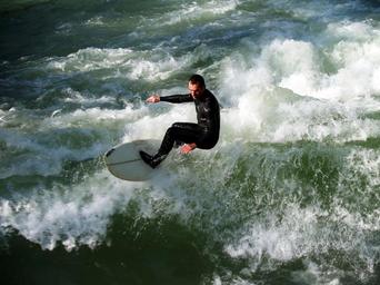 Keywords: surfer wave water munich sport surfing surf surfboard fun wetsuit sunny man