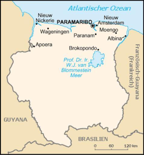 | Keywords: Suriname.png Karte von Suriname Auf dieser CIA Karte sind die mit Guyana und Franz-Guyana umstrittenen südlichen Gebiete nicht gekennzeichnet und wurden den beiden Nachbarländern grafisch zugerechnet CIA World Factbook PD-USGov Original upload log de wikipedia Boteas CommonsHelper page de wikipedia Suriname png 2003-08-17 20 02 Head 328×353× 10337 bytes <nowiki>public domain von mir übersetzt</nowiki> 2003-02-14 13 46 Michael w 328×353× 8925 bytes <nowiki>Karte von Suriname aus CIA World Fact Book</nowiki> Maps of Suriname |