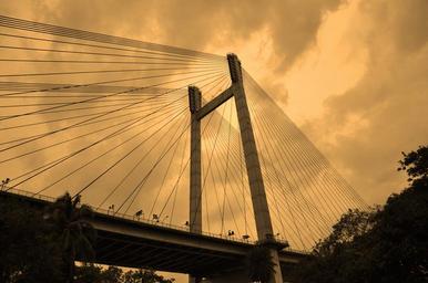 Keywords: suspension bridge cable bridge evening construction architecture bombay mumbai
