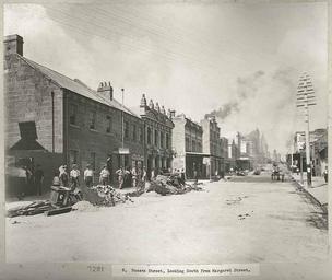 | Keywords: archives state records nsw staterecordsnsw newsouthwales blackandwhite the rocks therocks sydney plague bubonic plague bubonicplague people workers horse and cart horseandcart rubbish streets john degotardi jr. johndegotardijr road snow outdoor black and white From a series of images showing the areas in Sydney affected by the outbreak of Bubonic Plague in 1900. Taken by Mr. John Degotardi, Jr., photographer from the Department of Public Works, the images depict the state of the houses and 'slum' buildings at the time of the outbreak and the cleansing and disinfecting operations which followed. Sussex Street, looking south from Margaret Street, Sydney Dated: c. 17/07/1900 Digital ID: 12487_a021_a021000035 Rights: www.records.nsw.gov.au/about-us/rights-and-permissions We'd love to hear from you if you use our photos. Many other photos in our collection are available to view and browse on our website using Photo Investigator. From a series of images showing the areas in Sydney affected by the outbreak of Bubonic Plague in 1900. Taken by Mr. John Degotardi, Jr., photographer from the Department of Public Works, the images depict the state of the houses and 'slum' buildings at the time of the outbreak and the cleansing and disinfecting operations which followed. Sussex Street, looking south from Margaret Street, Sydney Dated: c. 17/07/1900 Digital ID: 12487_a021_a021000035 Rights: www.records.nsw.gov.au/about-us/rights-and-permissions We'd love to hear from you if you use our photos. Many other photos in our collection are available to view and browse on our website using Photo Investigator. |
