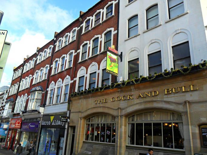 Keywords: architecture building outdoor building complex Cock and Bull pub on the ground floor. Cock and Bull pub on the ground floor.