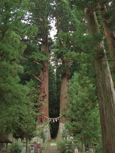 Keywords: Suwa Shrine 080823 01.jpg en This twin cryptomeria Jiji-sugi right ande Baba-sugi left is specified for the Natural Monument in Japan in Ono Town Fukushima Prefecture Japan ja 福島 田 郡小野町の諏訪神社にある翁 (じじすぎ・右側) 媼 (ばばすぎ・左側) 昭和12年に国の天然記念物に指定されている Own Yauchi 2008-08-23 Cryptomeria japonica Natural monuments in Japan Ono Fukushima Shimenawa Shrines in Fukushima prefecture Suwa-jinja |