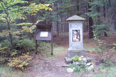 | Keywords: Sv Antonín.jpg cs Svatý Antonín je v lese mezi Svorem a Kytlicemi Lužické hory vedou zde lyžařské pěší trasy Naučná stezka Pod Klíčem own Zákupák 2011-10-22 50 48 11 515 N 14 34 14 674 E region CZ Wayside crosses in Česká Lípa District NS Pod Klíčem |