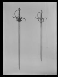 | Keywords: Svärdfejare, värja - Livrustkammaren - 126.tif LSH artwork sv Fäste av stål med påslaget silver i form av yttäckande mönster av rank- och figurmotiv silvret med spår av förgyllning Knapp stor nötformig något avsmalnande uppåt och med ovalt tvärsnitt nitknapp platt tämligen stor Pareranordning bestående av öppen handbygel med inåt-nedåböjd rundad övre ände och med två sidobyglar utgående åt vardera ut- och insidan stora S-svängda parerstänger höga fingerbyglar förenade nedtill med en tvärbygel omfattande en genombruten parerplåt ej autentisk Av de från handbygeln utgående sidobyglarna övergår den på utsidan i höjd med krysset i en tvärbygel som bågformig ansluter nedåt till utsidan av fingerbyglarnas nederändar Den inre sidobygeln övergår nedtill i tre sidospänger varav den främre ansluter till nederdelen av den främre fingerbygeln och de två andra till nederdelen av den bakre fingerbygeln <br/>Kaveln lindad med tunn mässingstråd omväxlande slät och tvinnad lindningen ej autentisk <br/><br/>Klinga rak och tämligen bred tvåeggad flackslipad Utan ricasso baspartiet innan förfingerbyglarna eggslipat Starka delens utsida med påslagen ornering i orientalisk stil av bladrankor i guld och silver guldet i två nyanser original caption svärdfejare värja - LRK 6361 ca other date - 1500 1600 steel b12 - blankvapen - fäste och klinga material stål - gold b5 - blankvapen - klingdekor material guld - silver b45 - blankvapen - fäste och klingdekor material silver size mm 975 size mm 220 size mm 817 klinga size mm 44 klinga g 1790 LRK Gustav II Adolf av Sverige Gustav II Adolf Minnesutställning 1932 1932 Gustav II Adolf 350 år efter Lützen 1982-1984 place of origin original filename LN_A01260_001260 41651 inventory number LRK 6361 126 CC0 Svärdfejare värja - Livrustkammaren - 126-negative tif <gallery caption Different images of same object > File Svärdfejare värja - Livrustkammaren - 105 tif File Svärdfejare värja - Livrustkammaren - 77149 tif File Värja - Livrustkammaren - 25691 tif File Svärdfejare värja - Livrustkammaren - 127 tif </gallery> Rapier images from Livrustkammaren Full hilt swords images from Livrustkammaren Media contributed by LSH unmatched material Media contributed by LSH dim-with multiple size templates Media contributed by LSH 2014-06 |