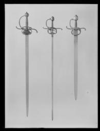 | Keywords: Svärdfejare, värja - Livrustkammaren - 127.tif LSH artwork sv Fäste av stål med påslaget silver i form av yttäckande mönster av rank- och figurmotiv silvret med spår av förgyllning Knapp stor nötformig något avsmalnande uppåt och med ovalt tvärsnitt nitknapp platt tämligen stor Pareranordning bestående av öppen handbygel med inåt-nedåböjd rundad övre ände och med två sidobyglar utgående åt vardera ut- och insidan stora S-svängda parerstänger höga fingerbyglar förenade nedtill med en tvärbygel omfattande en genombruten parerplåt ej autentisk Av de från handbygeln utgående sidobyglarna övergår den på utsidan i höjd med krysset i en tvärbygel som bågformig ansluter nedåt till utsidan av fingerbyglarnas nederändar Den inre sidobygeln övergår nedtill i tre sidospänger varav den främre ansluter till nederdelen av den främre fingerbygeln och de två andra till nederdelen av den bakre fingerbygeln <br/>Kaveln lindad med tunn mässingstråd omväxlande slät och tvinnad lindningen ej autentisk <br/><br/>Klinga rak och tämligen bred tvåeggad flackslipad Utan ricasso baspartiet innan förfingerbyglarna eggslipat Starka delens utsida med påslagen ornering i orientalisk stil av bladrankor i guld och silver guldet i två nyanser original caption svärdfejare värja - LRK 6361 ca other date - 1500 1600 steel b12 - blankvapen - fäste och klinga material stål - gold b5 - blankvapen - klingdekor material guld - silver b45 - blankvapen - fäste och klingdekor material silver size mm 975 size mm 220 size mm 817 klinga size mm 44 klinga g 1790 LRK Gustav II Adolf av Sverige Gustav II Adolf Minnesutställning 1932 1932 Gustav II Adolf 350 år efter Lützen 1982-1984 place of origin original filename LN_A01270_001270 41651 inventory number LRK 6361 127 CC0 Svärdfejare värja - Livrustkammaren - 127-negative tif <gallery caption Different images of same object > File Svärdfejare värja - Livrustkammaren - 105 tif File Svärdfejare värja - Livrustkammaren - 77149 tif File Svärdfejare värja - Livrustkammaren - 126 tif File Värja - Livrustkammaren - 25691 tif </gallery> Rapier images from Livrustkammaren Full hilt swords images from Livrustkammaren Media contributed by LSH unmatched material Media contributed by LSH dim-with multiple size templates Media contributed by LSH 2014-06 |
