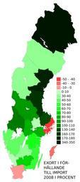 Keywords: Svenska läns export i förhållande till import 08.svg sv Svenska läns export i förhållande till import 2008 Ett negativt värde innebär att länet importerar mer än det exporterar http //www regeringen se/content/1/c6/14/84/94/43e2a84c pdf Länens totala export 2008 och 2009 miljarder SEK och http //www regeringen se/content/1/c6/14/84/94/d416f71f pdf Länens totala import 2002-2009 miljarder SE <br>Map from File SWE-Map Län svg by Lokal_Profil Marcusroos 2010-06-29 SVG maps of Sweden Economic maps of Sweden