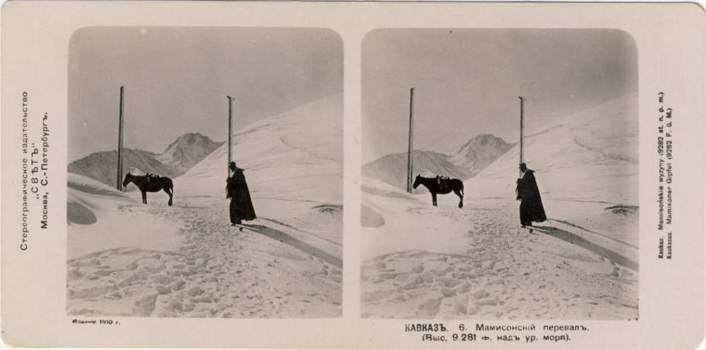 | Keywords: Svet. Caucasus. 006. Mamison pass.jpg en Mamison pass ru амисонский пе евал ka მამის ის უღელტეხილი 1910 Stereoscopic collection of the SVET publishing author PD-old-100 Uploaded with UploadWizard Stereo cards by SVET publishing Mamisoni pass 1910 in Georgia Snow in Georgia |