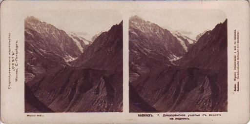 | Keywords: Svet. Caucasus. 007. Devdarak canion.jpg en Devdarak canion ru Девдо акское ущелье с видом на ледник ka დევდ რაკის ხე ბა მყი ვარის ხედით 1910 Stereoscopic collection of the SVET publishing author PD-old-100 Uploaded with UploadWizard Caucasus Stereo cards by SVET publishing |