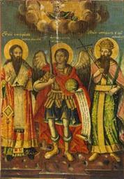 | Keywords: Sveti Sofronij, Mihail i Stefan Dečanski od Sv. Bogorodica Tetovska.jpg mk Св Соф ониј а хангел ихаил и св Стефан Дечански ц ква Св Бого одица Тетово Околу 1860 година Авто се ат ибуи а на Дичо зог аф Дим 36 Х 26 2 Х 2 см http //www kalamus com mk/pdf_spisanija/patrimonium_5/021 20 20027_4 20Patrimonium 202012 20 20M 20M 20Masnic pdf THE ICON GALLERY IN THE CHURCH OF STS CYRIL AND METHODIUS IN TETOVO Dičo Zograf 1860 PD-Macedonia Ss Cyril and Methodius icon gallery Tetovo Icons in the church of the Theotokos Life Giving Spring Tetovo Paintings by Dicho Zograf 1860 paintings Icons of archistrateg Michael Stefan Uroš III Dečanski of Serbia Sophronius of Jerusalem Icons of saints with three persons |