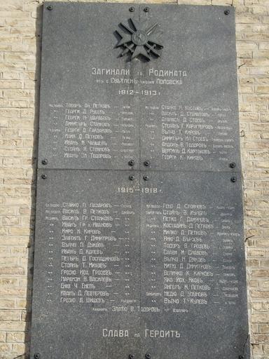 | Keywords: Svetlen pametna pocha.jpg bg Паметната плоча с имената на загиналите жители на село Светлен община Попово във войните поставена на цъ ковната камбана ия own Wlado bg Vladimir Stoykov 08-02-2008 Monuments and memorials in Svetlen Plaques in Bulgaria War memorials in Bulgaria |