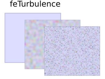 | Keywords: SVG filter feTurbulence.svg Description/Beschreibung Filter feTurbulence in SVG Beispiele für den Filter feTurbulence in SVG Links Rechteck ohne Filter Mitte Filter feTurbulence vom Typ fractalNoise mit der Basis-Frequenz <code> 1</code> Rechts Filter feTurbulence vom Typ turbulence mit der Basis-Frequenz <code> 2</code> Beide Filter sind mittels feComposite und feBlend auf die Rechtecke angewendet Source Own illustration 2006 Illustrator Arne Nordmann norro Source code <svg xmlns http //www w3 org/2000/svg xmlns xlink http //www w3 org/1999/xlink width 320 height 240 > <defs> <title>feTurbulence</title> <filter id feTurb01 filterUnits objectBoundingBox x 0 y 0 width 100 height 100 > <feTurbulence type fractalNoise baseFrequency 1 result out1 /> <feComposite in out1 in2 SourceGraphic operator in result out2 /> <feBlend in SourceGraphic in2 out2 mode darken result out3 /> </filter> <filter id feTurb02 filterUnits objectBoundingBox x 0 y 0 width 100 height 100 > <feTurbulence baseFrequency 2 numOctaves 2 seed 3 result out1 /> <feComposite in out1 in2 SourceGraphic operator in result out2 /> <feBlend in SourceGraphic in2 out2 mode darken result out3 /> </filter> </defs> <text x 30 y 20 style fill 000; font-size 24px; font-family sans-serif; >feTurbulence</text> <rect x 15 y 40 width 170 height 150 style fill ddf; stroke bbd; stroke-width 2px; /> <rect x 75 y 60 width 170 height 150 style fill ddf; stroke bbd; stroke-width 2px; filter url feTurb01 /> <rect x 135 y 80 width 170 height 150 style fill ddf; stroke bbd; stroke-width 2px; filter url feTurb02 /> </svg> Created with Text Editor norro Optical filters SVG mathematics SVGs demonstrating filter effects |