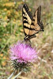 Keywords: swallowtail butterfly purple flower thistle vibrant close-up nature