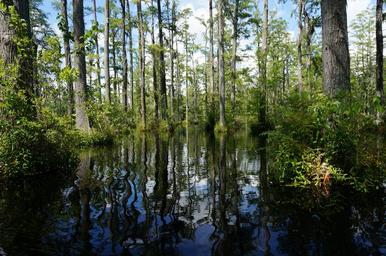 Keywords: swamp trees lily pads wildlife wilderness outdoors lake landscape nature forest water marsh reflection wetland cypress sun tranquil