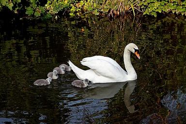 Keywords: swan bird cygnets baby young wildlife nature family water animal lake white wild feather natural swim swimming cygnus graceful summer elegance beak grace scene wing waterfowl pond