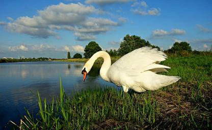 Keywords: swan bird waterbird waterfowl cygnus white grace graceful wildlife ornithology water swimming pond lake moat waterway scene rural reeds green blue