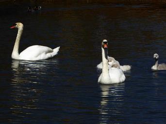 Keywords: swan family spring pond swim