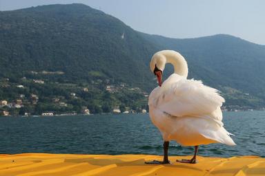 Keywords: swan free float lake iseo lake christo italy lombardy brescia nature water bird blue yellow