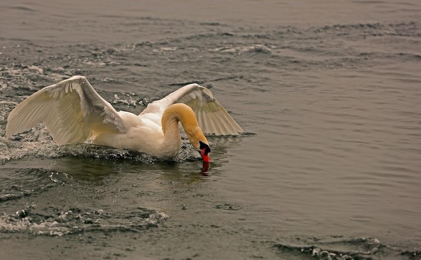 Keywords: swan landing water nature fly sea threatening feather plumage waterfowl animal world bird start wave