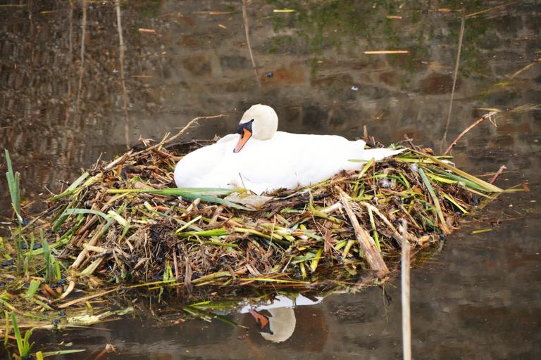 Keywords: swan nest swan's nest sweltering swan nature breed scrim