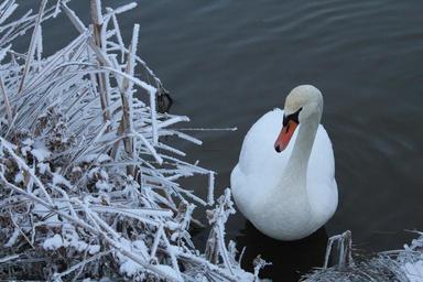 Keywords: swan snow nature winter landscape branches winter landscape plants reed water