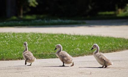 Keywords: swan waddle chicks cute bird young animals sweet three park young