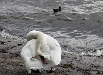 Keywords: swan water bird white funny sporty