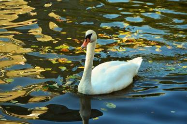 Keywords: swan water lake water bird autumn leaves elegant animal nature animal world waters lighting sunlight