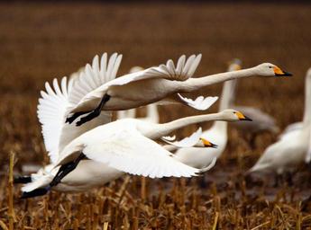 Keywords: swan whooper swan bird migratory bird swans birds field arable flock of birds swarm water bird migratory birds