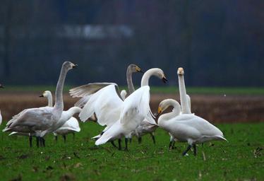 Keywords: swan whooper swan bird swans flock of birds migratory bird birds water bird field